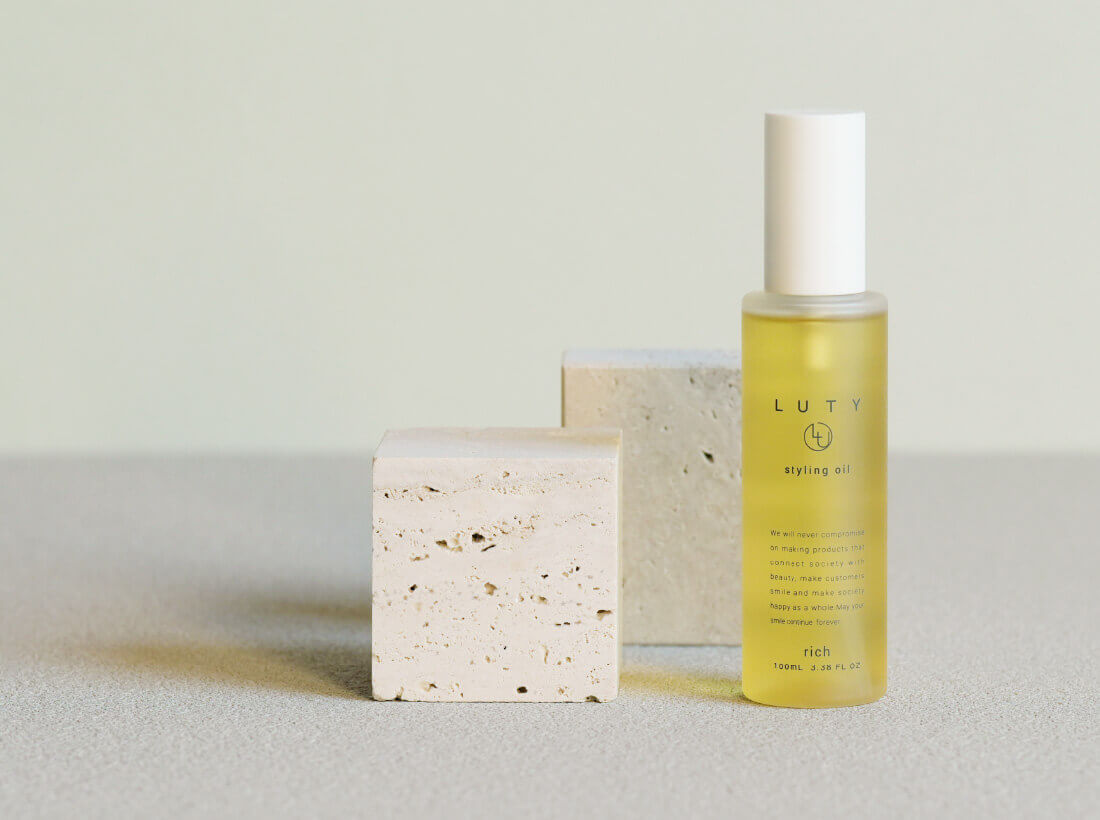 オイルスタイリング特有のベタつきや手残りをカバー。植物由来のケア成分が髪を補修しつつ、ウェットな質感から自然なツヤ感を表現します。